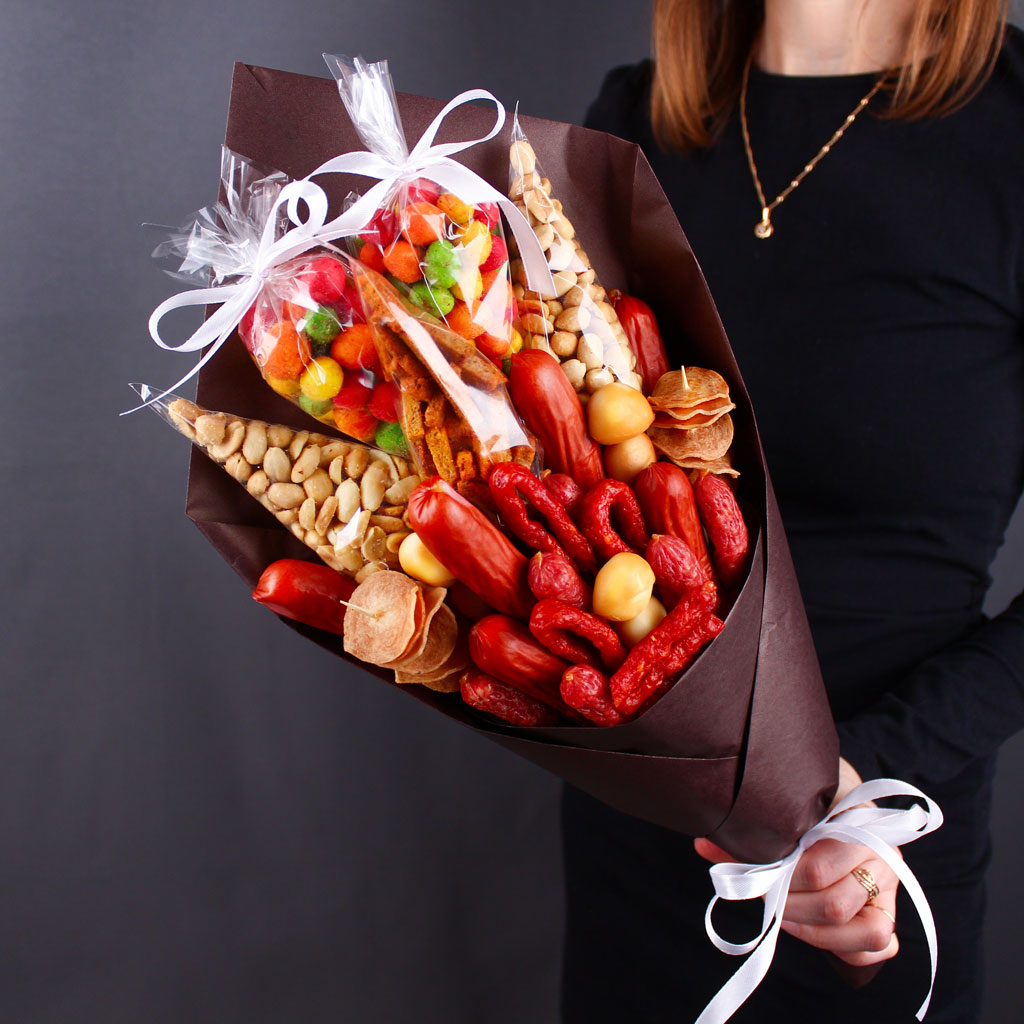 Готовый ответ на вопрос «что подарить мужчине?». Букет «Милн-Заряд» — это продуманная композиция из лучших сытных деликатесов, которую мы собрали для вас. Охотские колбаски, сыр скаморца, хрустящие чипсы и орехи — каждый элемент выбран и скомпонован так, чтобы подарок производил максимальное впечатление и говорил о вашем внимании. Вы дарите не еду, а готовое событие, повод для радости и общения.