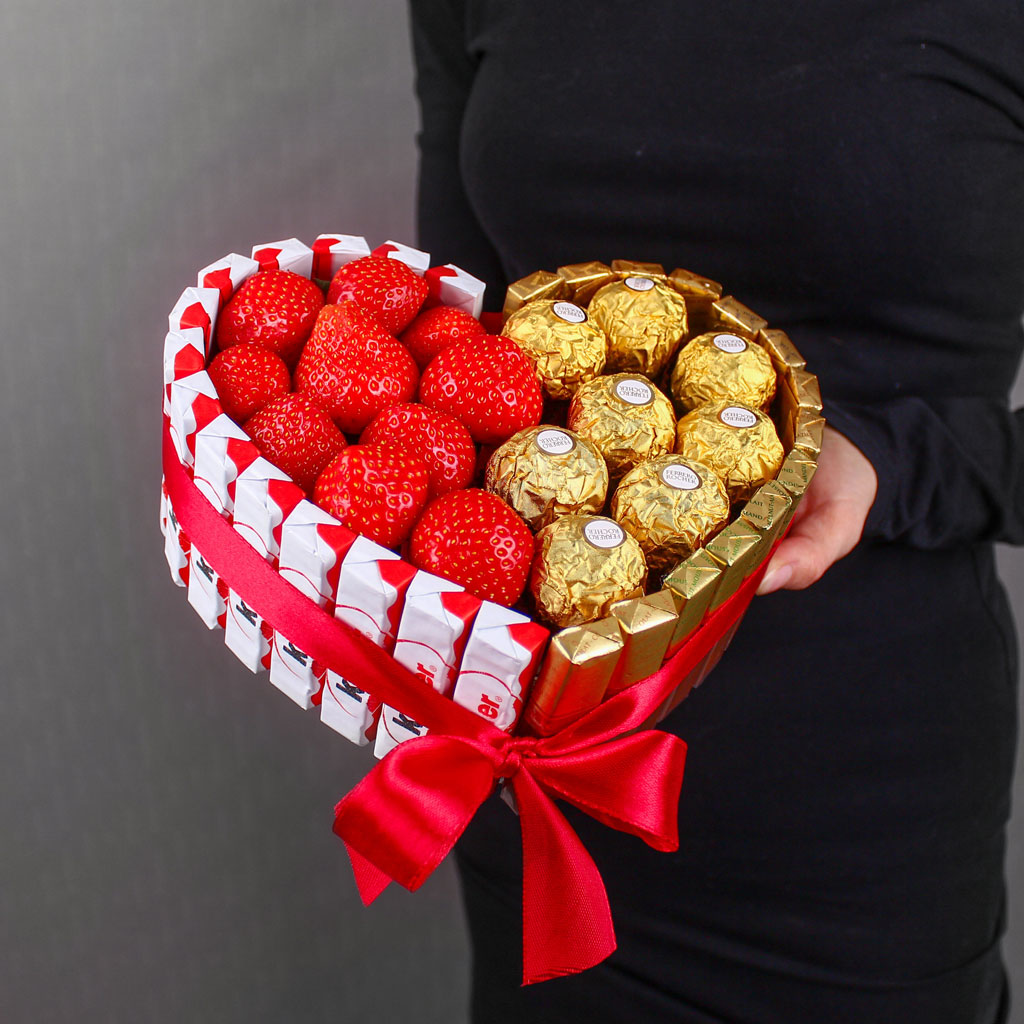 Сердце, которое бьётся в такт сладким мечтам! Набор «Лав-Берри» — это не просто подарок, а гарантированный восторг. Мы собрали в форму сердца всё, что обожают: популярные шоколадки, сочную свежую клубнику и изысканные конфеты. Этот подарок говорит на универсальном языке сладости и внимания. Он создан для того, чтобы вызвать самую искреннюю улыбку и стать главным героем праздничных фото.